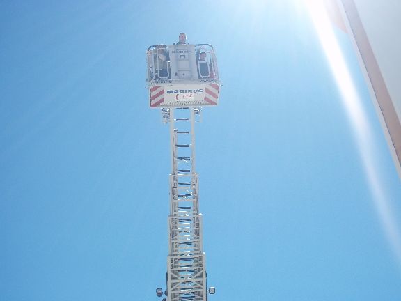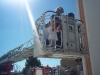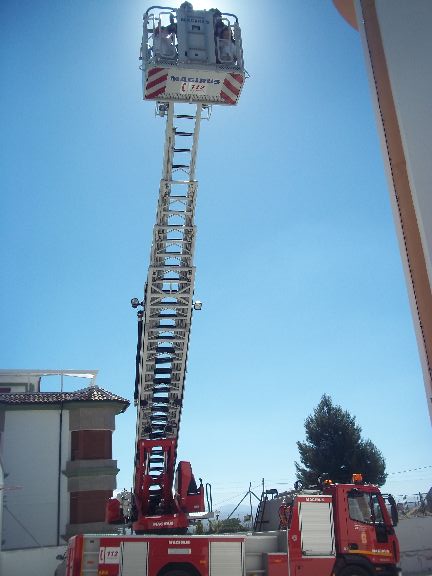 La intrepidante experiencia finaliza con la simulación de un rescate en altura, los pequeños bomberos y bomberas utilizan el Vehículo Escala para salvar a un atrapado en un incendio que pide ayuda por una ventana.