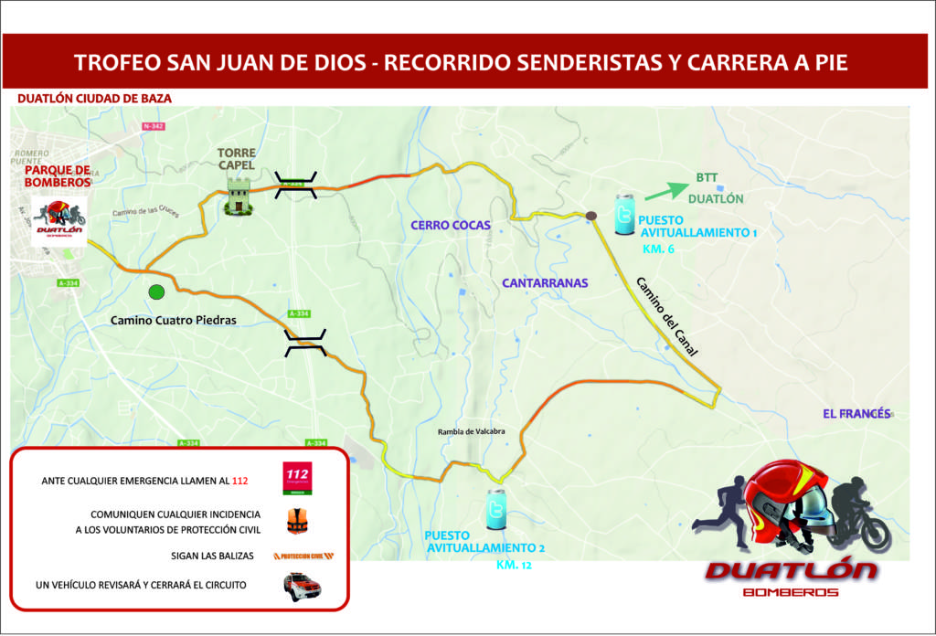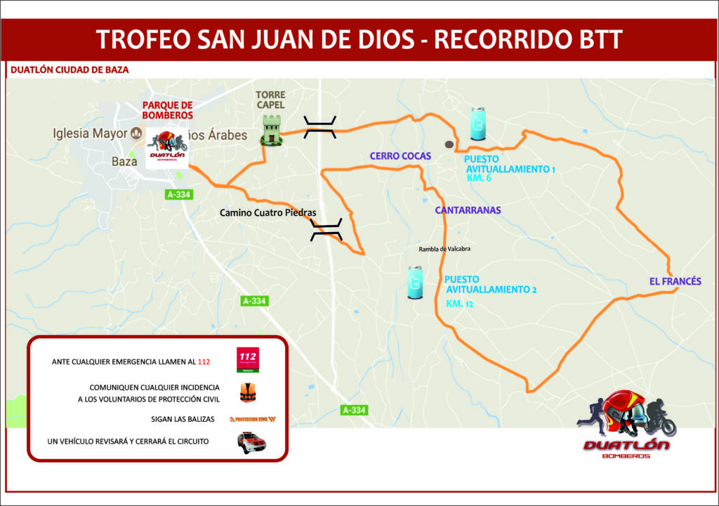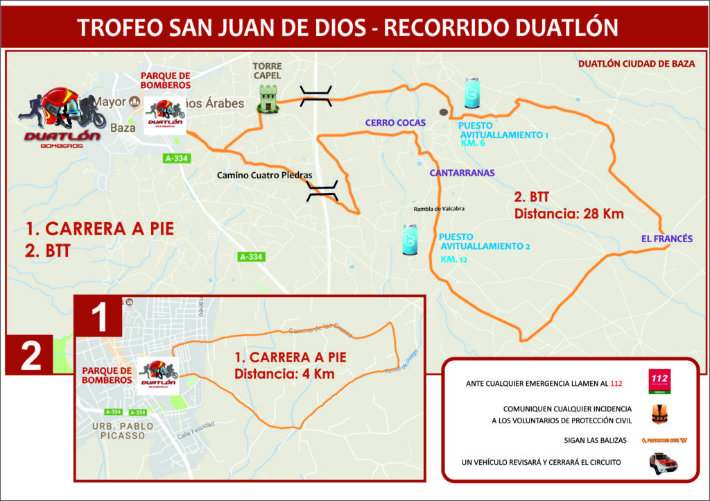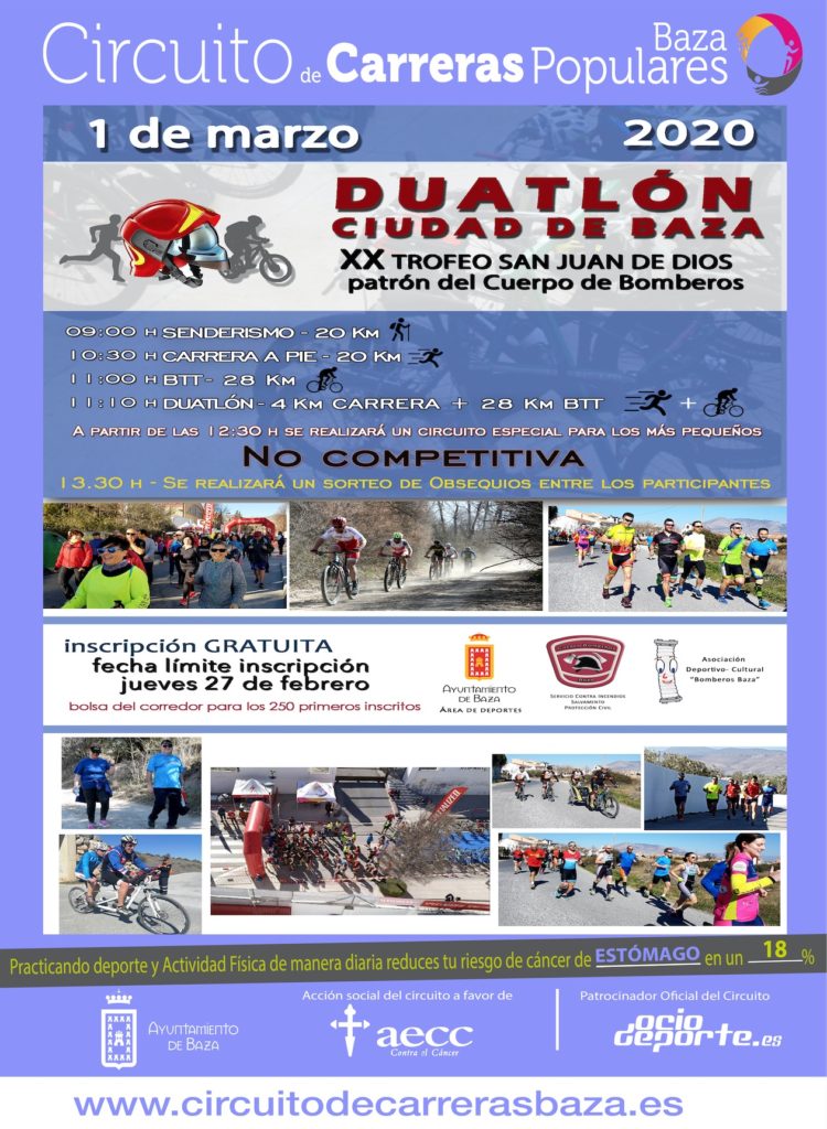 El domingo 1 de marzo le esperamos en la XXVIII Duatlón Ciudad de Baza y XX Trofeo San Juan de Dios. Una prueba organizada por la Asociación Deportivo Cultural Bomberos Baza y el Servicio contra Incendios Salvamento y Protección Civil en colaboración con el Ayuntamiento de Baza, con motivo de la celebración de la festividad patronal de San Juan de Dios.
