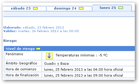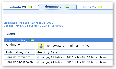 La Agencia Estatal de Meteorología ha decretado Alerta Amarilla ante temperaturas mínimas que podrán alcanzar los -4ºC en la madrugada del domingo y hasta -5ºC en la madrugada del lunes.