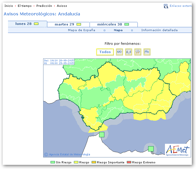 La AEMET ha decretado el nivel de aviso amarillo por lluvias y tormentas en el ámbito geográfico de la Cuenca del Genil, Guadix y Baza.