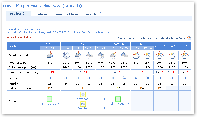 Mañana sábado 14 de Abril, la AEMET ha decretado alerta amarilla por nieve y viento en Baza y Guadix.