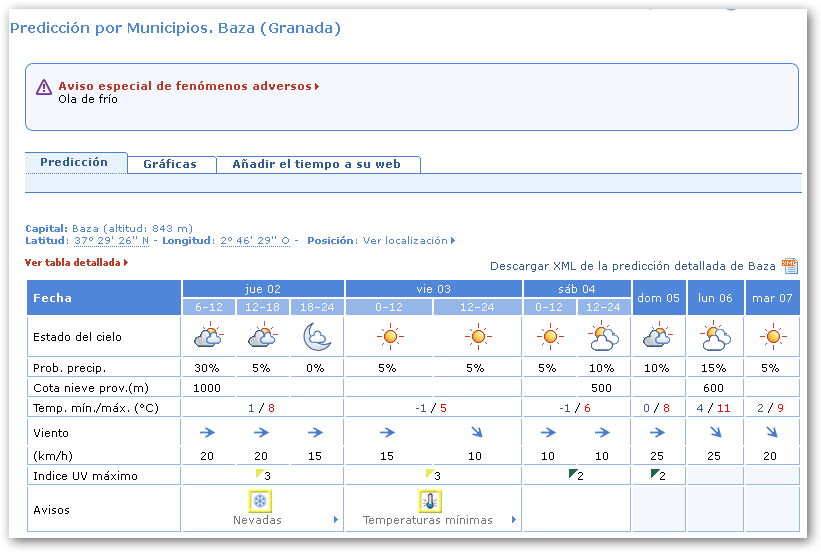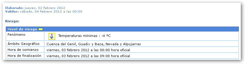 La Agencia Estatal de Meteorología ha activado el nivel de Alerta amarilla por ola de frío en las Comarcas de Guadix y Baza, desde las 00’00 horas del viernes 03 febrero hasta las 09’00 horas del viernes 3 de febrero.