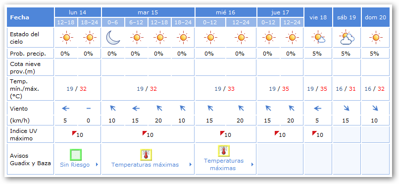 La Agencia Estatal de Meteorología decreta nivel de alerta amarillo ante temperaturas máximas que pueden alcanzar los 38ºC en los próximos días.