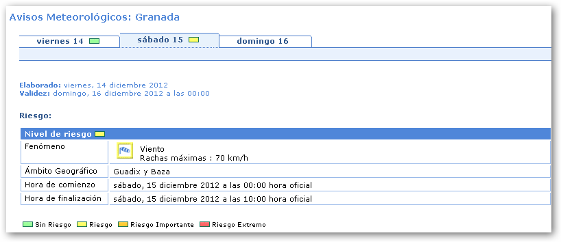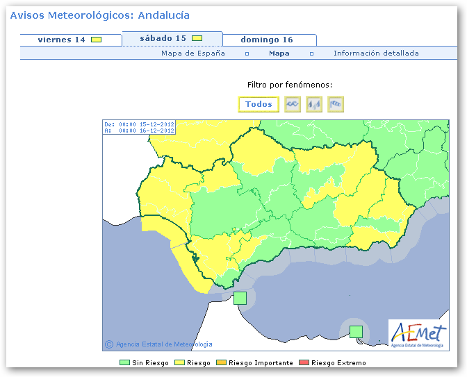 La alerta permanecerá activada desde las cinco de la tarde de hoy viernes hasta la una del medio día de mañana sábado, día 15 de diciembre.
