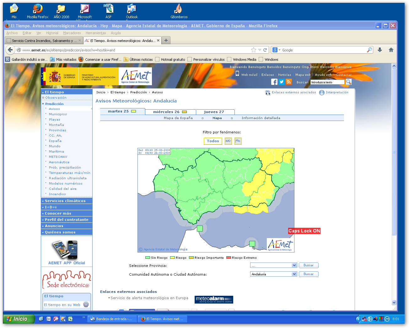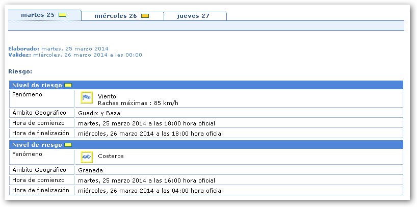 La alerta permanecerá activada desde las 18’00 horas del 25 de marzo hasta las 18’00 horas del día 26.