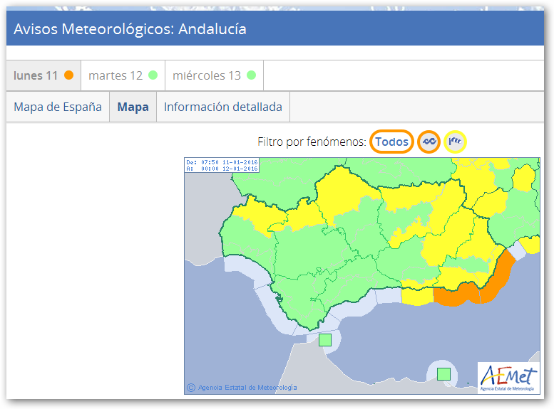 La Alerta permanecerá activada desde las 00’00 horas hasta las 20’00 horas del 11 de enero de 2016.