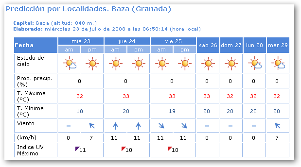 «Cielos poco nubosos o despejados, salvo nubosidad de evolución diurna en las sierras de Norte. Temperaturas mínimas en ligero descenso y máximas en ligero ascenso. Vientos de componente Sur flojos en el interior; de componente Este, flojos a moderados en el litoral.