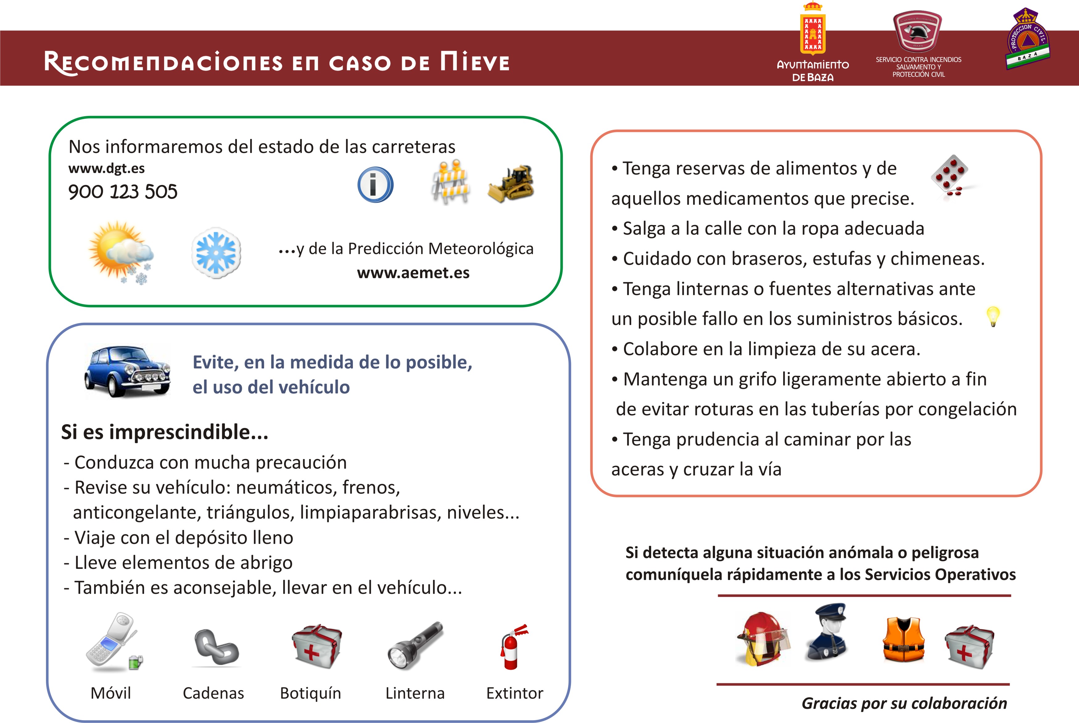 La Agencia Estatal de Meteorología ha decretado Alerta Naranja por nieve en las Comarcas de Guadix y Baza con la acumulación de 7 cm, desde las 18 horas del domingo 15 de Enero hasta las 8:00 horas del lunes 16 de enero.