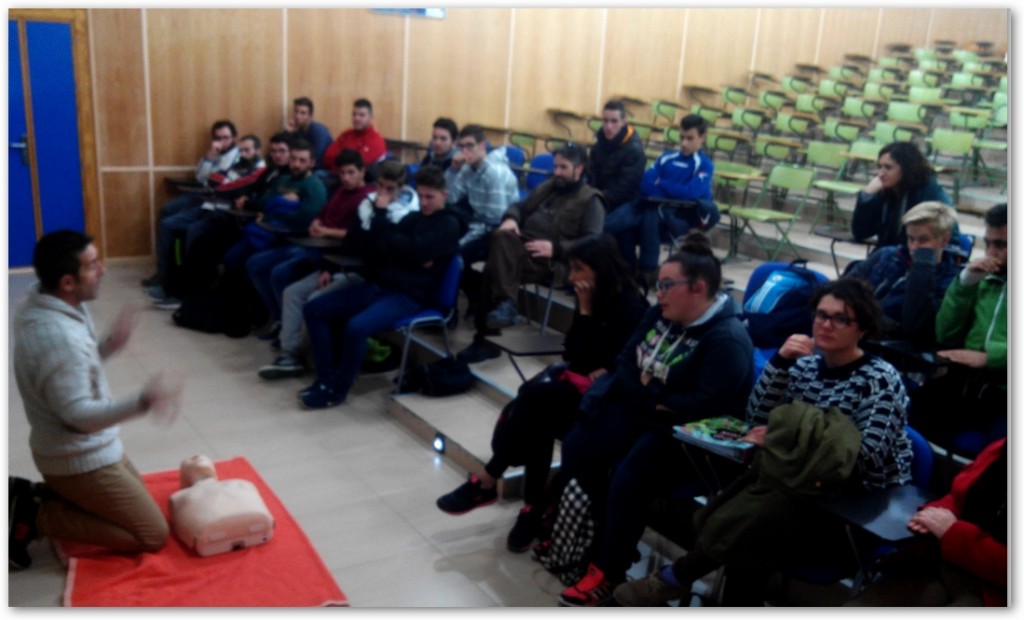 Personal del Servicio contra incendios, Salvamento y Protección Civil del Ayuntamiento de Baza, Instructores en estas técnicas, se han desplazado al Instituto Jiménez Montoya para compartir estos sencillos conocimientos que pueden llegar a ser vitales para una persona.