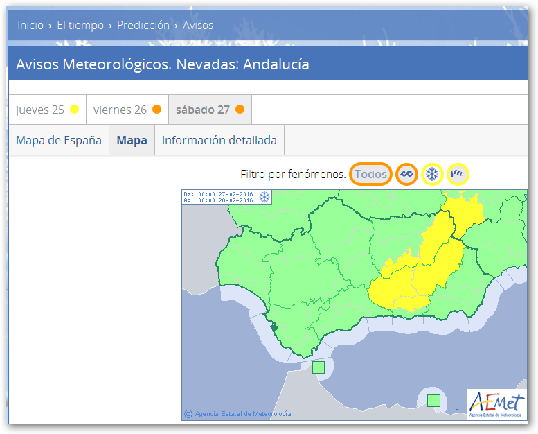 La Aemet ha activado el nivel de alerta amarillo por nevadas en el ámbito geográfico de Guadix y Baza.