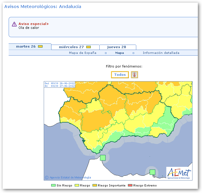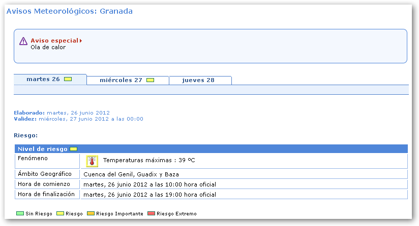 La Agencia Estatal de Meteorología activa el nivel de alerta amarillo ante una ola de calor, por temperaturas que pueden alcanzar los 39º centígrados en la Cuenca del Genil, Guadix y Baza.