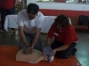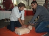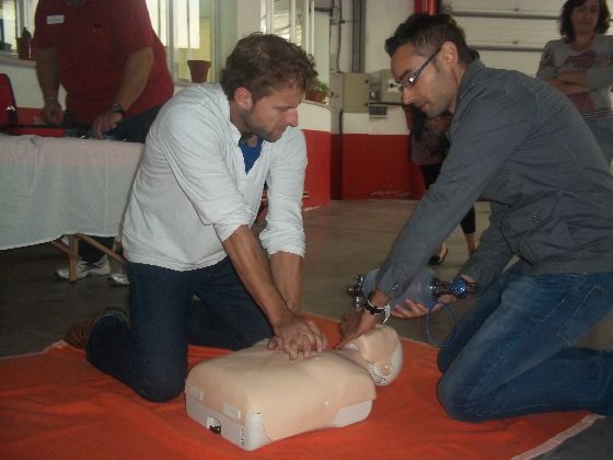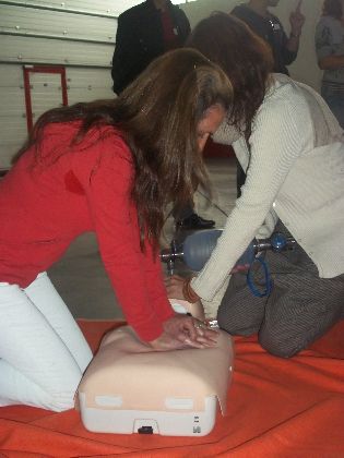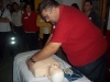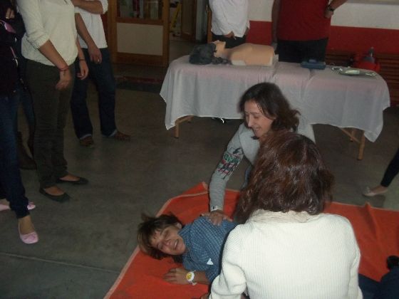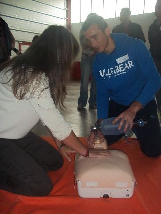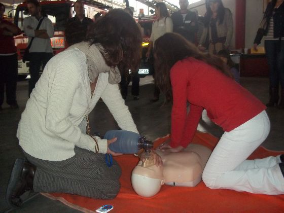 La mañana del sábado se dedicó a primeros auxilios de la mano de los voluntarios de Protección Civil, conscientes de la necesidad de una preparación continua y extensible a la mayor población posible, una formación que puede salvar vidas. Todos los participantes practicaron la maniobra RCP, la maniobra de Heimlich (en caso de atragantamiento) y la posición lateral de seguridad. Además, aprovechando las instalaciones del Parque de Bomberos, se explicó la gestión integral de una emergencia, desde la llamada al 112 hasta la movilización de recursos al lugar del siniestro.