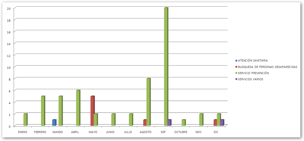 Los meses de verano (entre mayo y septiembre) concentraron la mayoría de las intervenciones con el 52,5% y también en estos meses se registraron el grueso de los rescates en accidentes de tráfico. En el último año se han atendido a 35 personas heridas y a 3 víctimas mortales y la causa principal de las atenciones a heridos han sido los accidentes de tráfico.