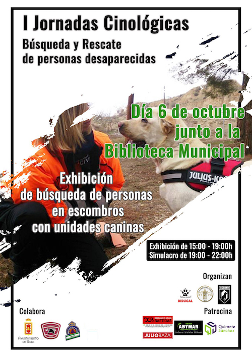 Una ciudad que ha sufrido un terremoto, con edificios derribados y montones de escombros que pueden esconder bajo ellos a víctimas, heridas o fallecidas. Así será el escenario al que se enfrentarán las unidades cinológicas que el próximo sábado día 6 de octubre participarán en las jornadas de orientación y búsqueda de personas con perros de rescate que organizan en Baza las asociaciones SYR Detectores Didugal; La perla del Turia K9 y Skank9, compuestas por profesionales de diversos cuerpos de seguridad y de rescate (UME, Policía Nacional, Guardia Civil, Protección Civil, bomberos) que están formados en el adiestramiento de perros de rescate, con la colaboración del Ayuntamiento de Baza, y sus Servicio contra Incendios y Protección Civil, junto con la Junta de Andalucía, a través del Grupo de Emergencias de Andalucía 112.