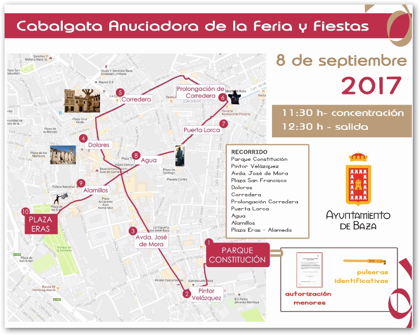 Mañana, 8 de septiembre, la colorida y dinamizada Cabalgata Anunciadora de Feria y Fiestas recorrerá las calles de Baza a partir de las 12.30 horas.