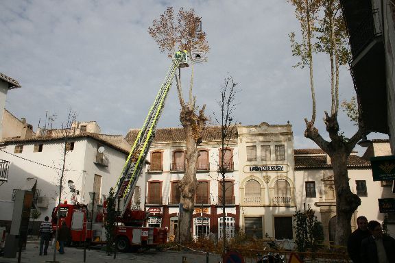 El Ayuntamiento de Baza ha iniciado la poda de árboles de gran porte en el centro histórico, en donde se ha detectado acumulación de suciedad y malos olores a consecuencia de la gran cantidad de pájaros que están anidando en sus ramas o en los que pueden suponer un peligro para los edificios colindantes.