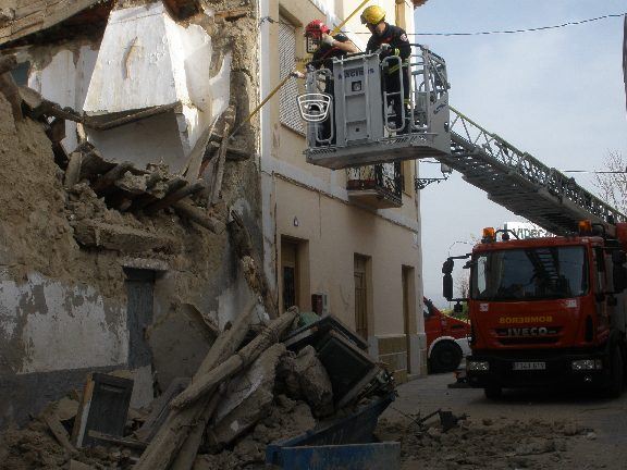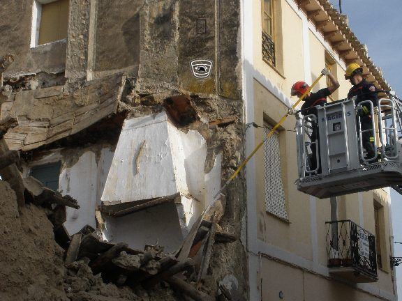 Ayer a las 18’31 horas se recibía una llamada de Policía Local alertando de la caída de la fachada y tejado de una vivienda en C/ Rabalía Baja. Dos bomberos y el Jefe de Servicio con el FSV y el AEA, procedieron a demoler la misma, en presencia del Arquitecto Municipal. Asiste Policía Local y el Concejal de Seguridad Ciudadana.