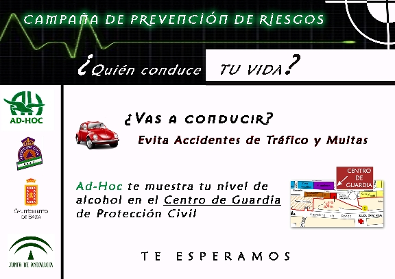 Como novedad, este año la Agrupación de Voluntarios de Protección Civil ha participado en la Campaña de Prevención de Riesgos ¿Quién conduce tu vida? organizada por Ad-hoc, el Centro de Tratamiento de Adicciones bastetano, con el objetivo de evitar accidentes de tráfico y multas entre los asistentes a la Feria antes de utilizar su vehículo. Los voluntarios y voluntarias de Protección Civil, tras recibir la formación adecuada por los profesionales de Ad-hoc, realizaban controles de alcoholemia durante sus guardias nocturnas. A su vez, voluntarios, usuarios y trabajadores de Ad-hoc colaboraron en la realización de estas pruebas durante los días de mayor afluencia de público al Recinto.