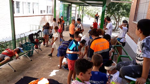 Los voluntarios de Protección Civil se ha encargado de guiarlos en el rescate y en la evacuación de los heridos, en las técnicas básicas de primeros auxilios, en la organización en un puesto sanitario, en el uso de emisoras para la transmisión y recepción de la información y en la realización de la reanimación cardiopulmonar. Se ha aprovechado la ocasión para finalizar con un caso de accidente de tráfico, incidiendo en las medidas de seguridad con el uso de la bicicleta o los patinetes y las señales de tráfico.