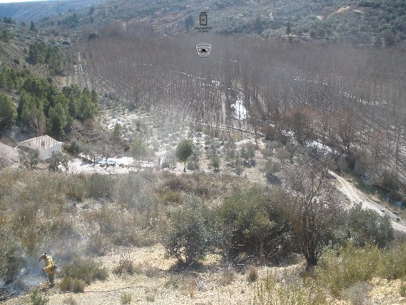Simultáneamente, personal de este Servicio ha alertado de un incendio en el Barrio Perchel, cerca del río Baza junto a una balsa de regadío. Mientras actuaban en el lugar de este incendio, los bomberos han avistado una columna de humo cercana a su posición, por lo que tras un primer control de este incendio, se han desplazado hasta el origen de esta columna, tratándose de una quema de un montón de ramas junto a un poste de electricidad, que ha afectado a 500 m2 de maleza. A la finalización, han regresado para refrescar el terreno colindante a la balsa de riego, unos 800 m2 de maleza.