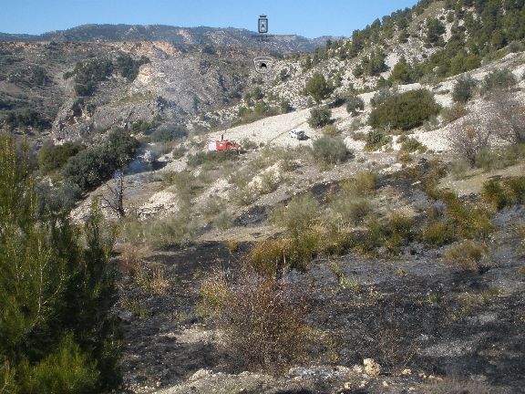 Bomberos de Baza han actuado durante más de dos horas, en un incendio en la ribera del río Galera donde han actuado bomberos de Huéscar y efectivos de Infoca que han trabajado en el control y extinción de un incendio que ha afectado a una extensión de grandes dimensiones. Agentes de Seprona realizarán una investigación para conocer las causas y llevar a cabo una medición exacta del terreno afectado.