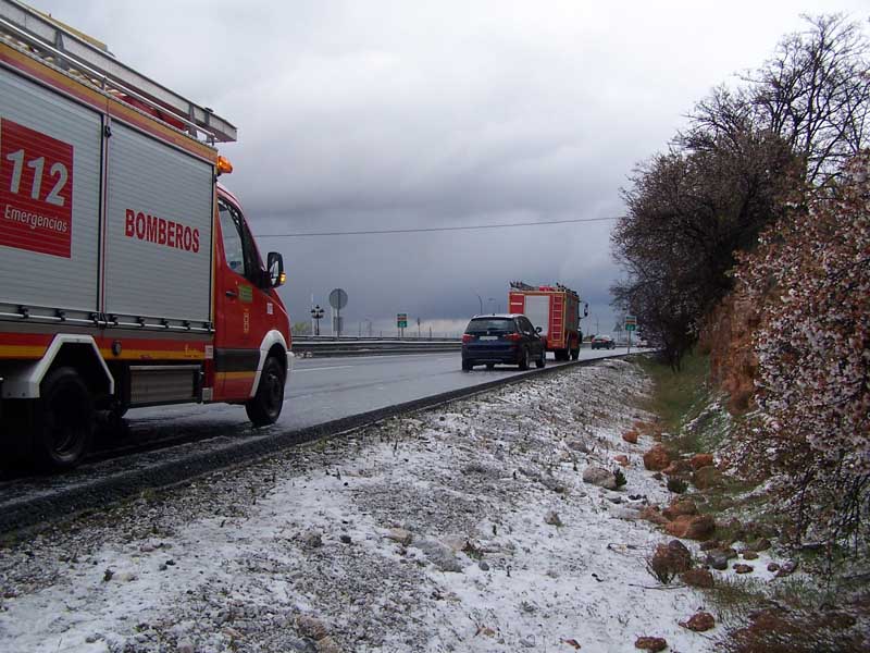 Pasado el mediodía del sábado tras una intensa granizada, el 112 alertaba de un accidente en el kilómetro 23 de la A-92N sentido Granada, entre los términos de Baúl y Gor. Durante el desplazamiento, una nueva llamada informaba de otro siniestro a tan sólo un kilómetro del anterior. Bomberos de Baza y Bomberos de Guadix, llegaron al primer accidente encontrando dos turismos con un ocupante cada uno que presentaban heridas leves y que fueron atendidos conjuntamente en colaboración con los Servicios Sanitarios que trasladaron a las dos víctimas al Hospital de Baza.