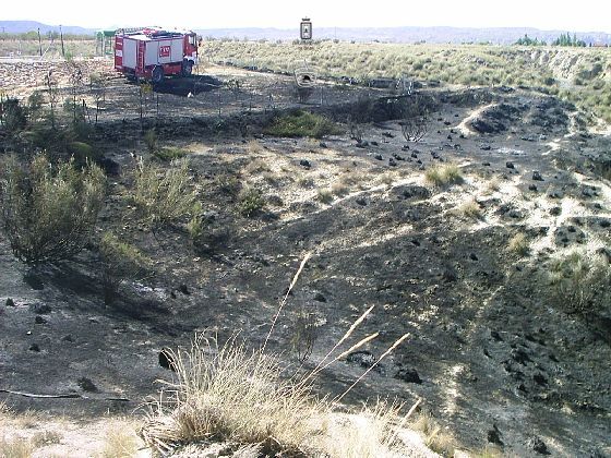 Tan solo una hora tras el regreso de la intervención anterior, el 112 alerta de otro incendio en el camino de Mandujar en la localidad de Zújar, donde se han quemado más de 500 m2 de matorral y rastrojos en un terreno de viñedos. Guardia Civil también se ha desplazado al lugar para realizar las investigaciones correspondientes.