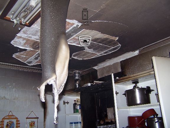 El incendio se ha originado en la cocina. El fuego de una sartén con aceite se ha propagado a la campana extractora así como a los muebles colindantes, inundando de humo parte del imueble así como las zonas comunes del edificio.