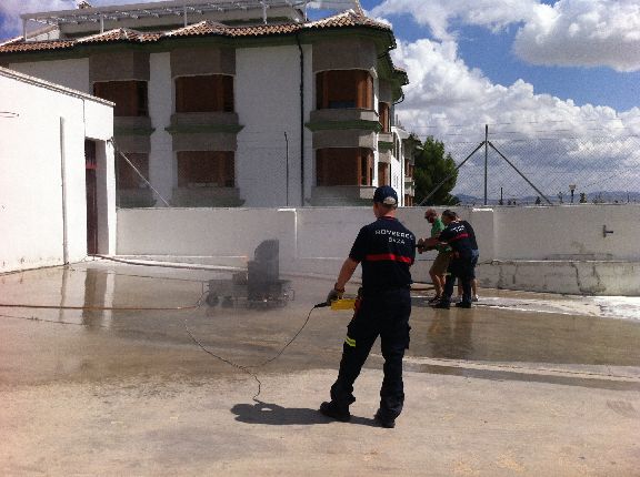 Los trabajadores del I.E.S. Al-Zujáyr de Zújar, comenzaban el curso escolar preparándose antes de la llegada de los alumnos en prevención y extinción de incendios.