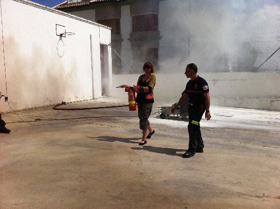 El pasado lunes 9 de septiembre, una decena de profesores y profesoras recibían formación contra incendios de mano de los profesionales bomberos de este Servicio.