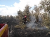 La intervención ha comenzado a las 15.58 de la tarde, cuando los vecinos del entorno han llamado al servicio alertados por el humo existente, y han sido precisas más de cinco horas para extinguir las llamas. Las labores han sido especialmente laboriosas debido a la presencia de olivos, unos cien han quedado muy afectados, en cuya madera las llamas se reinician con facilidad.