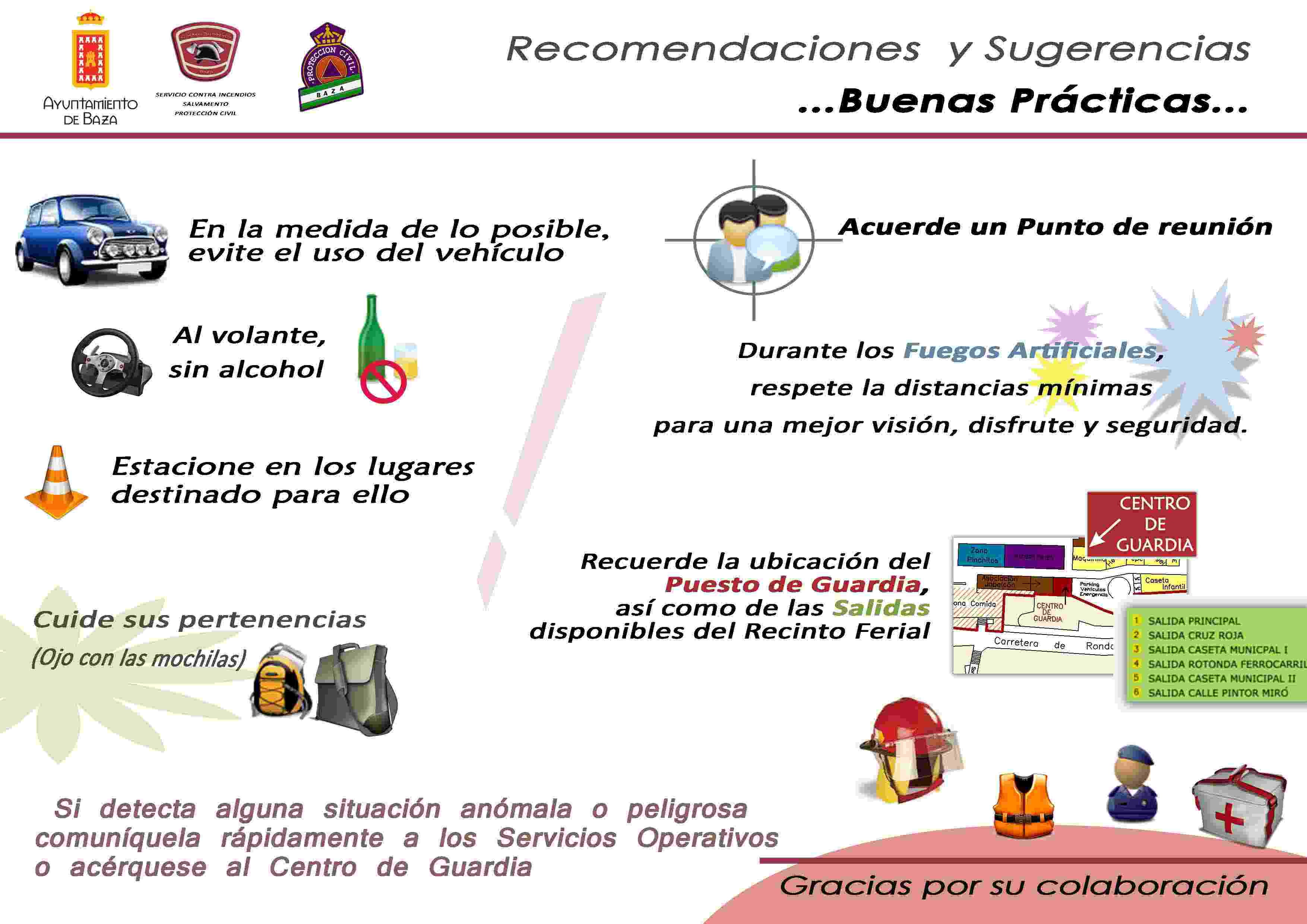 Durante estos días de celebración, tanto Bomberos como Voluntarios de Protección Civil se encontrarán en el Centro de Guardia del Recinto Ferial. Este Centro estará operativo todos los días de 22:00 a 03:00 horas. Durante los días 8, 9, 14 y 15 de Septiembre se amplía una hora el horario nocturno de 22:00 a 04:00 horas y se crea un turno especial para el mediodía de 13:30 a 17:00 horas.