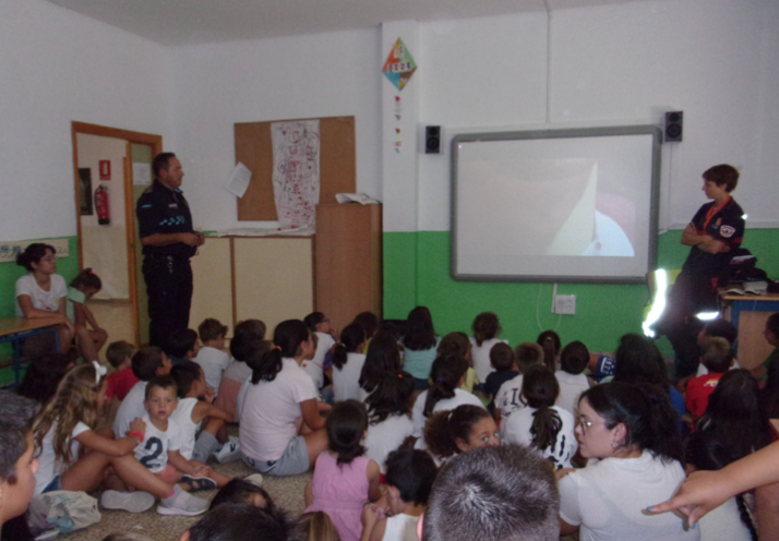 El jueves, fue el turno de la Escuela de Verano, en las instalaciones de Francisco Velasco donde, junto con un agente de Policía Local se llevaron a cabo talleres teóricos y prácticos de Seguridad Vial y Primeros Auxilios. Una actividad formativa conjunta que impulsa buenos y «legales» hábitos como peatones y el correcto uso de patinetes y bicicletas, conociendo el espacio compartido de la vía pública, practicando en rotondas y pasos de peatones y respetando los límites de velocidad y el resto de señales.