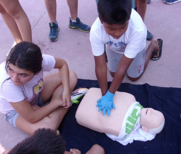 Escenificando posibles accidentes, estos jóvenes inquietos eran los responsables de atender a las víctimas, quemaduras con el tubo de escape, hemorragias, fracturas y traumatismo requerían que actuaran con seguridad y confianza e incluso, realizando maniobras de RCP y técnicas ante atragantamientos.