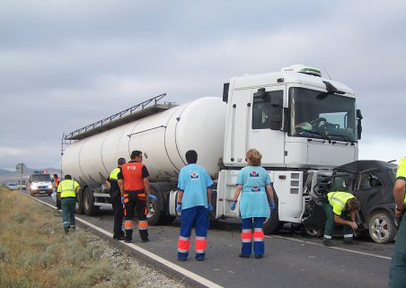 Una colisión frontal entre un turismo que se dirigía a Baza y un camión cisterna que circulaba sentido Benamaurel ha provocado el fallecimiento de un joven de 33 años, muy conocido entre la población de Baza. Los bomberos han realizado maniobras de descarcelación para poder liberar el cuerpo de la víctima del interior del habitáculo.