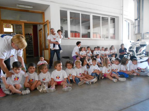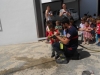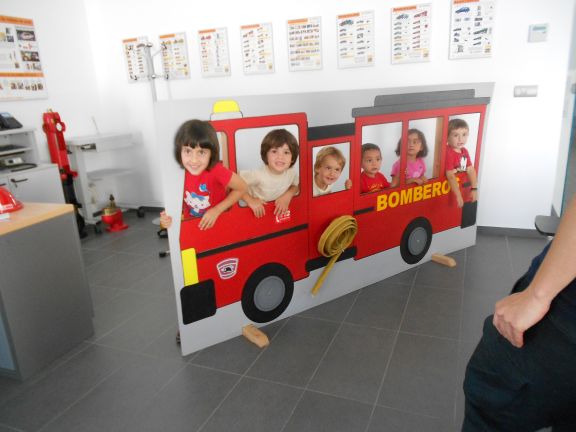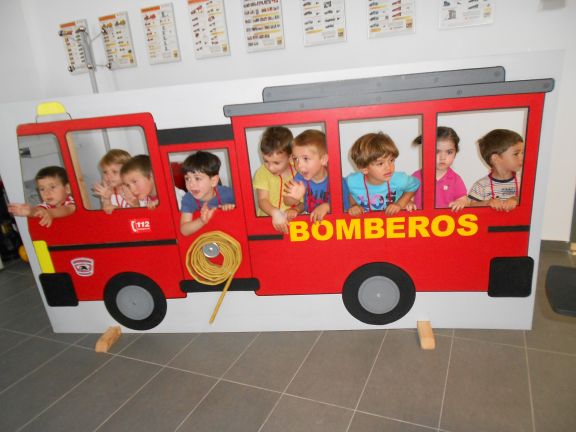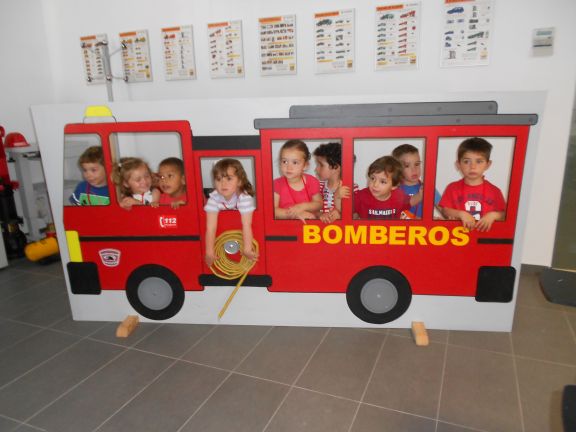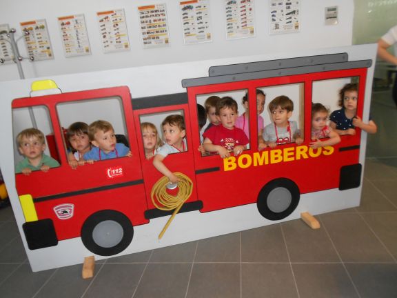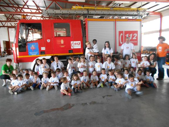 Los alumnos y alumnas de la Escuela Infantil Santo Ángel amenizaron la visita con una canción de bomberos para la ocasión.