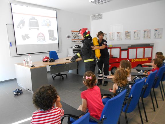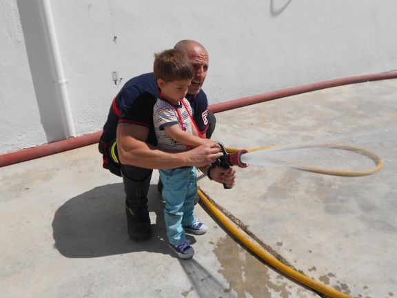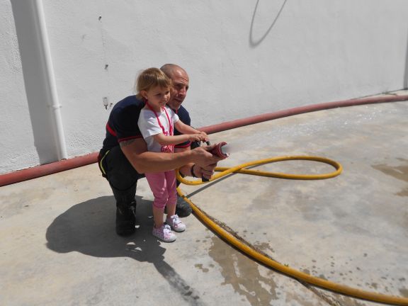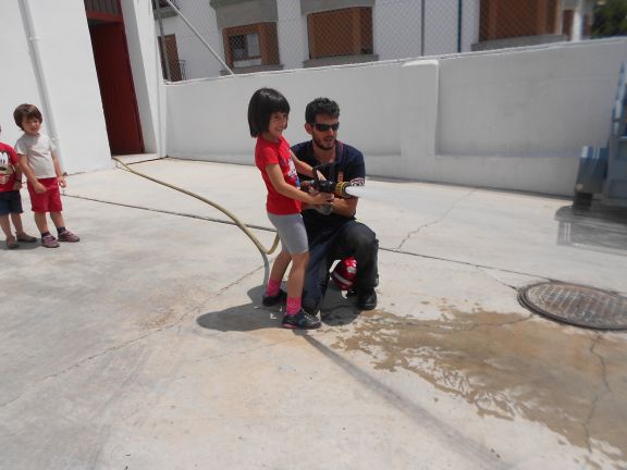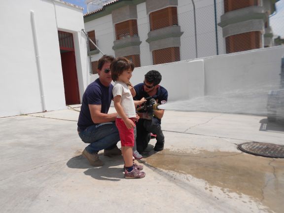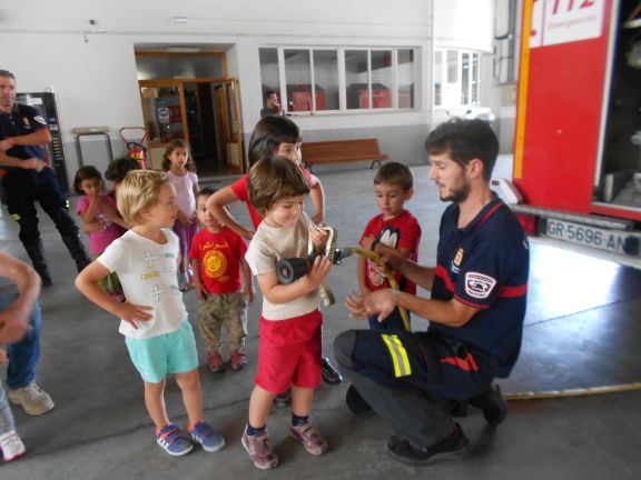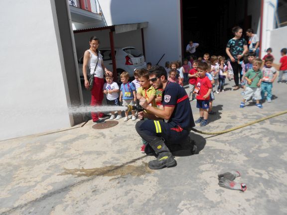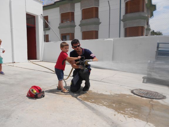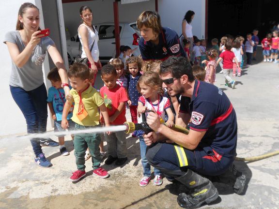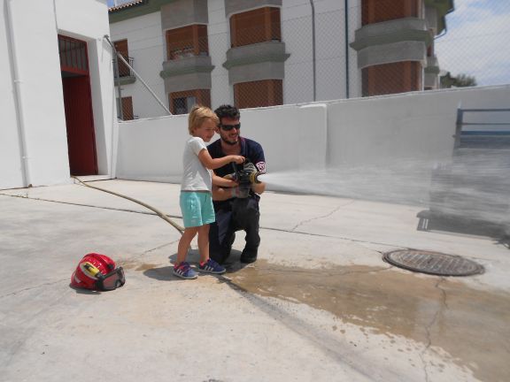 La primera semana de junio, la Escuela Infantil Dama de Baza desplazó a casi medio centenar de pequeños aventurados que no dudaron en ponerse la máscara y afinar la puntería para extinguir un incendio.