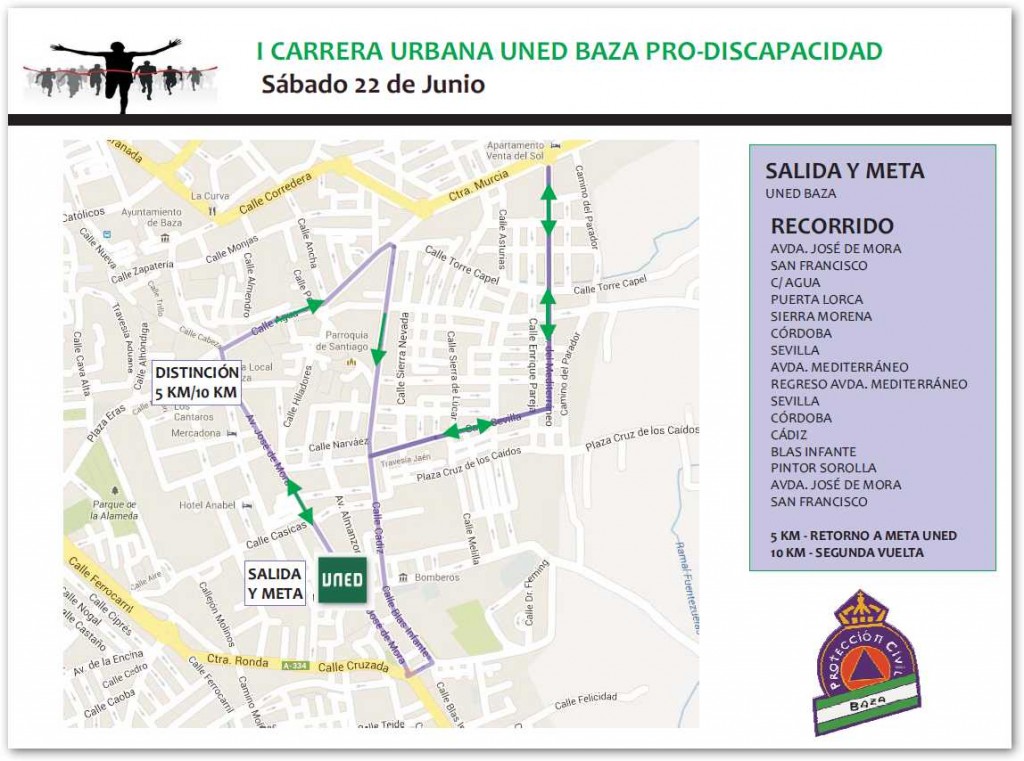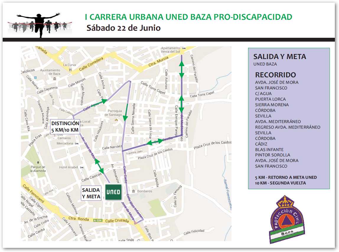 Carrera solidaria organizada por la UNED en colaboración con el Ayuntamiento de Baza y la participación de más de una veintena de empresas de Baza.
