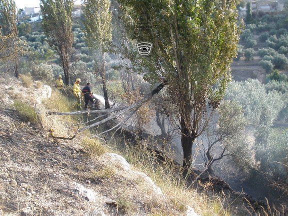 Dos bomberos dotados de la Bomba Forestal Pesada han extinguido una extensión de 1 hectárea y media de matorral, que ha afectado también a más de 10 olivos y varios chopos. Efectivos de Infoca también se han desplazado al lugar, así como Guardia Civil que trabaja en esclarecer las causas de este incidente.