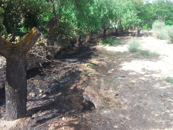 Esta tarde, los bomberos de Baza han extinguido un incendio en un terreno agrícola en el anejo cullarense de Venta Quemada, en una extensión de unos doscientos metros lineales en el huerto de una vivienda que ha afectado a varios almendros.