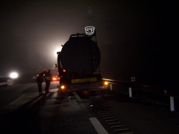 06’33 horas. El Centro de Coordinación de Emergencias activaba a este Servicio por el incendio en un camión que transportaba Mercancías Peligrosas y que se encontraba en la A-92 N, a la altura de la salida de Salazar (pk-50). Cuando los bomberos llegaron al lugar, el transportista con el uso de extintores, había extinguido parte del foco del incendio que se había originado en la rueda trasera, los bomberos proceden a la refrigeración de ésta y de la cistena. Posteriormente, el vehículo es trasladado a una zona más segura, fuera de la autovía.