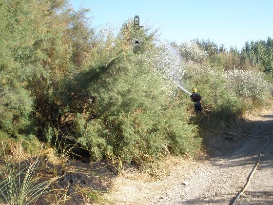 Hoy, a las 8’22 horas Guardia Civil alertaba de un incendio en la Rambla de Valcabra. Inmediatamente dos bomberos dotados con la Bomba Forestal Pesada se han dirigido al lugar del incendio y han extinguido aproximadamente dos hectáreas de árboles y maleza. Efectivos de la Guardia Civil, pertenecientes al Seprona también se han desplazado a este siniestro.