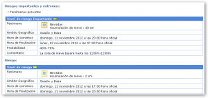 Desde las 17 horas de esta jornada de domingo, está activa la ALERTA AMARILLA POR NIEVES hasta las 20 horas, cuando comenzará la ALERTA NARANJA por acumulación de nieve de hasta 10 cm con una probabilidad del 40 al 70 % en cotas iguales o superiores a 1000-1200 metros y que se mantendrá activa hasta las 7 de la mañana del lunes, para cambiar nuevamente a ALERTA AMARILLA que se prolongará hasta las 10 de la mañana.