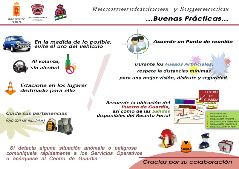 Personal de todas las Áreas del Ayuntamiento de Baza, Policía Local, Policía Nacional, Hospital de Baza, Operadores de la Sala de Coordinación del Servicio contra incendios, voluntarios de Protección Civil de Baza, Cruz Roja y las Hermandades de Baza y Guadix bajo el paraguas de la Sala de Coordinación del 112 de Granada, velaron por un Fiesta segura con un despliegue en todo el recorrido.