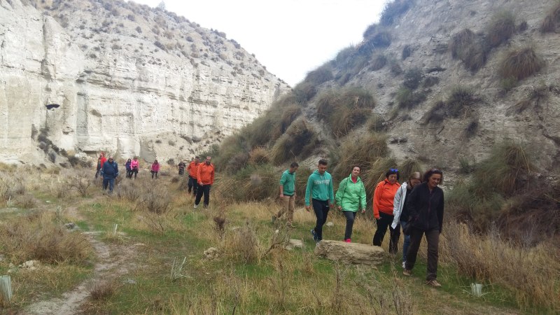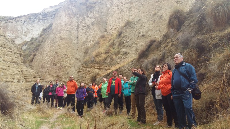 Se llevó a cabo una ruta interpretada a la falla de Baza para sumergirse en el pasado observando rocas y huellas de los últimos 4 siglos, contemplando el plano de la falla entre la cuenca de Guadix y Baza y continuando por la visita de las sismitas de Galera, estructuras sedimentarias de deformación únicas en la zona formadas por licuefacción.