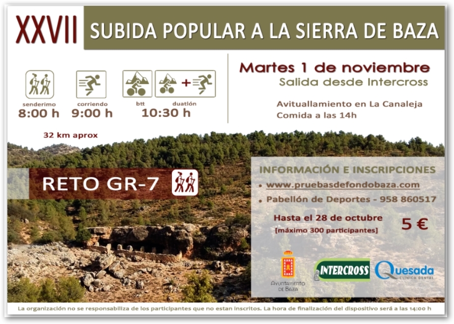 El próximo 1 de noviembre el Parque Natural de la Sierra de Baza, y su paraje ‘Los Prados del Rey’, se convierten en lugar de celebración de la ya tradicional Subida a la Sierra, organizada por el Ayuntamiento de Baza e Intercross en las modalidades de senderista, carrera a pie, duatlón y en bici de montaña.