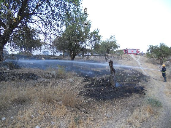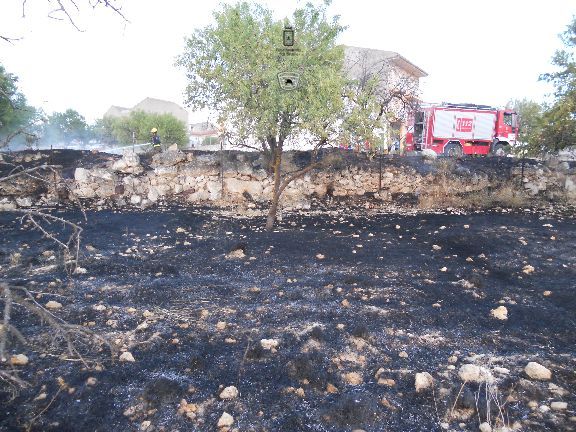 Numerosos cueveños llamaron al 112 para alertar de un incendio en suelo agrícola, muy cercano a las viviendas de la calle Nueva de esta localidad. Una dotación de bomberos con la Bomba Rural Pesada, controlaron y extinguieron este incendio que afectó a unos 3.000 metros cuadrados de pasto y algunos almendros.