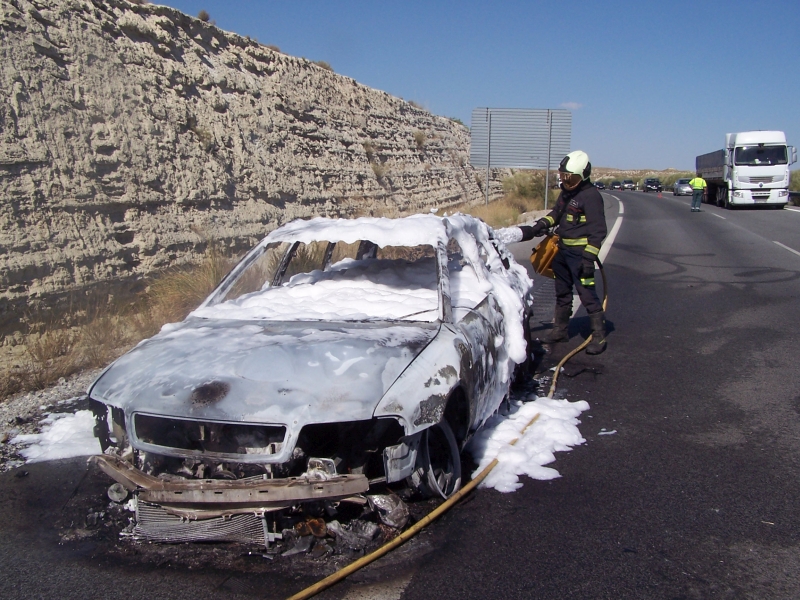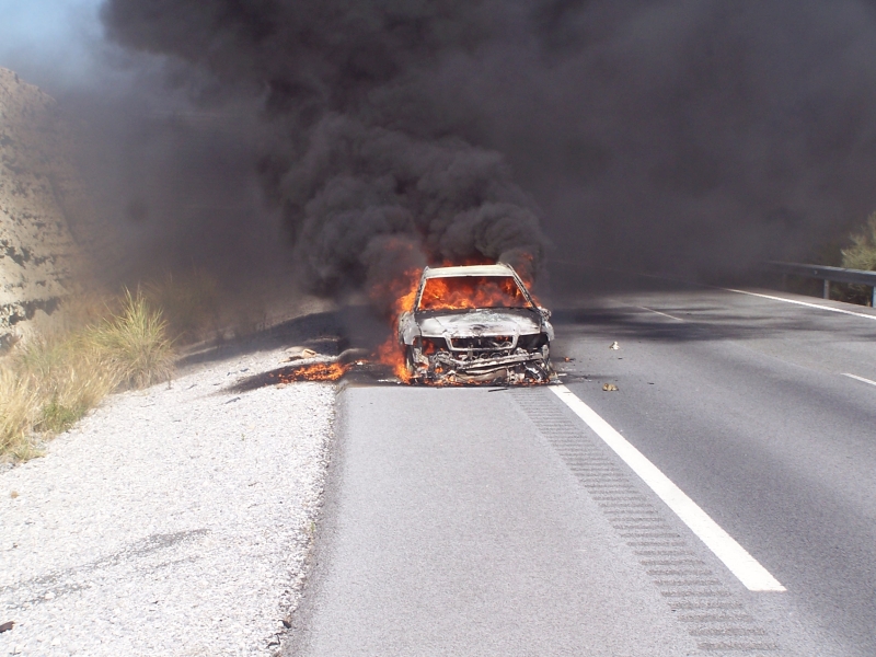 Esta tarde, una dotación del Servicio contra incendios del Ayuntamiento de Baza se ha desplazado hasta el kilómetro 50 de la A-92 N para la actuación ante un incendio en un vehículo en el que viajaban dos personas.