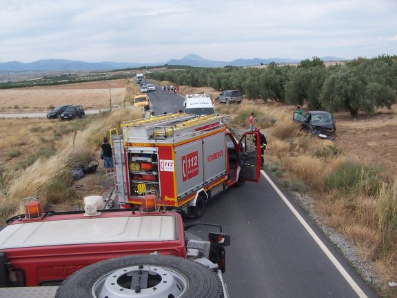 Dos turismos que viajaban en sentidos opuestos colisionaron frontalmente resultando heridos ambos conductores, siendo respectivamente, los únicos ocupantes de los mismos. En uno de los vehículos viajaba un hombre que fue trasladado inmediatamente al Hospital General Básico de Baza, en el otro, la conductora quedaba atrapada en el interior del habitáculo, siendo necesarias maniobras de descarcelación para liberarla y ser también trasladada al Centro Hospitalario por los Servicios Sanitarios que asistieron con una ambulancia y el helicóptero.