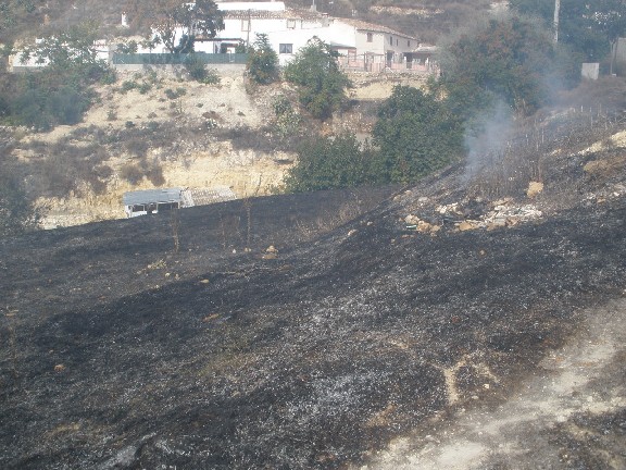 Pocos minutos después de las una del mediodía, una dotación de bomberos acudía al municipio zujarense de Carramaiza para la extinción de un incendio localizado en un solar muy próximo a las viviendas.